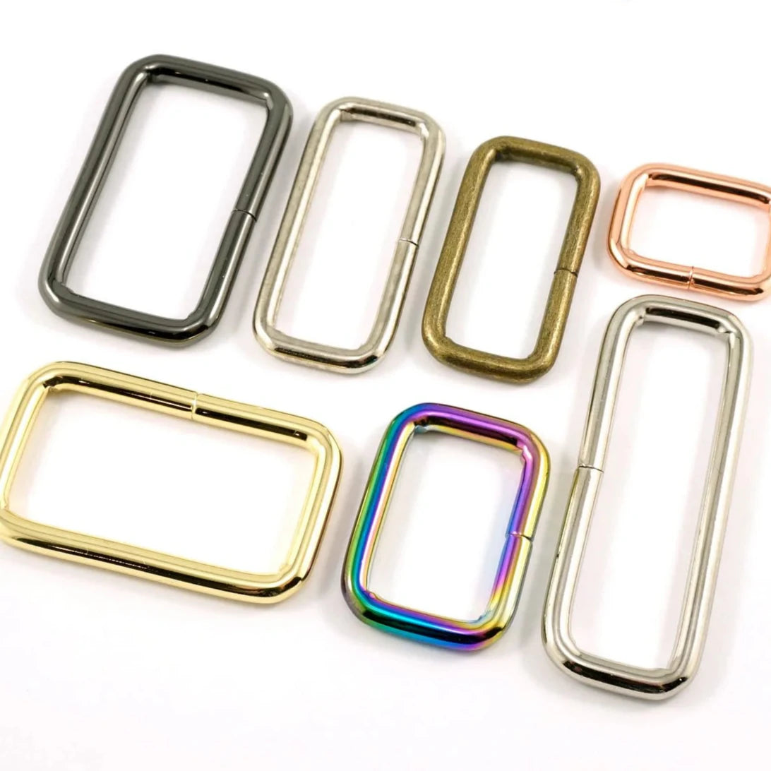 These rectangular rings are great to attach your handles and straps to your totes, and purses. Available in different sizes and finishes. Not all sizes are available in all finishes.