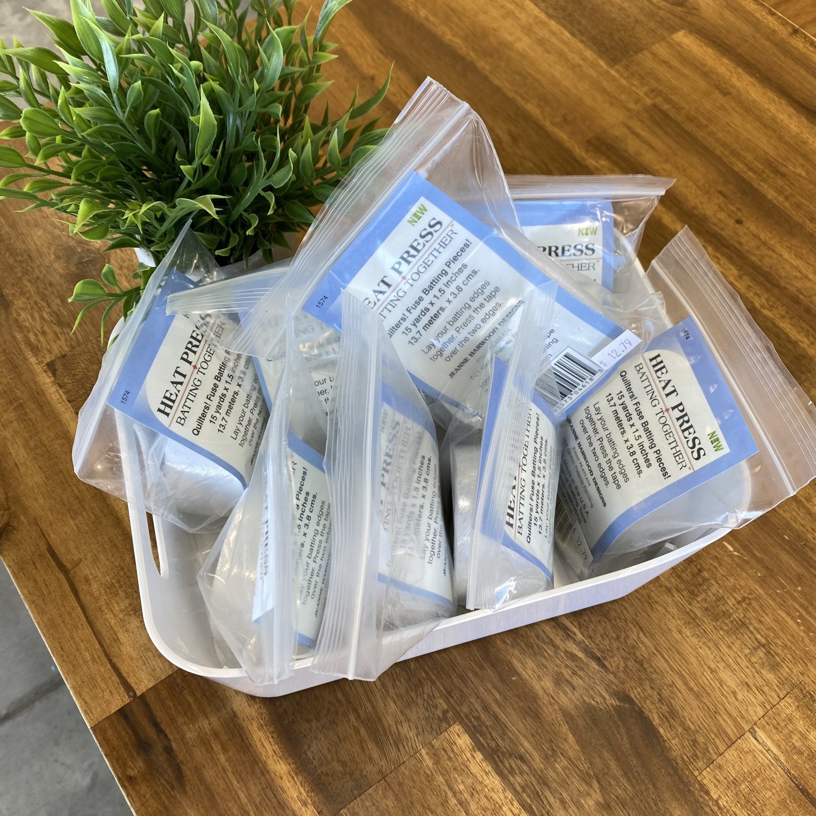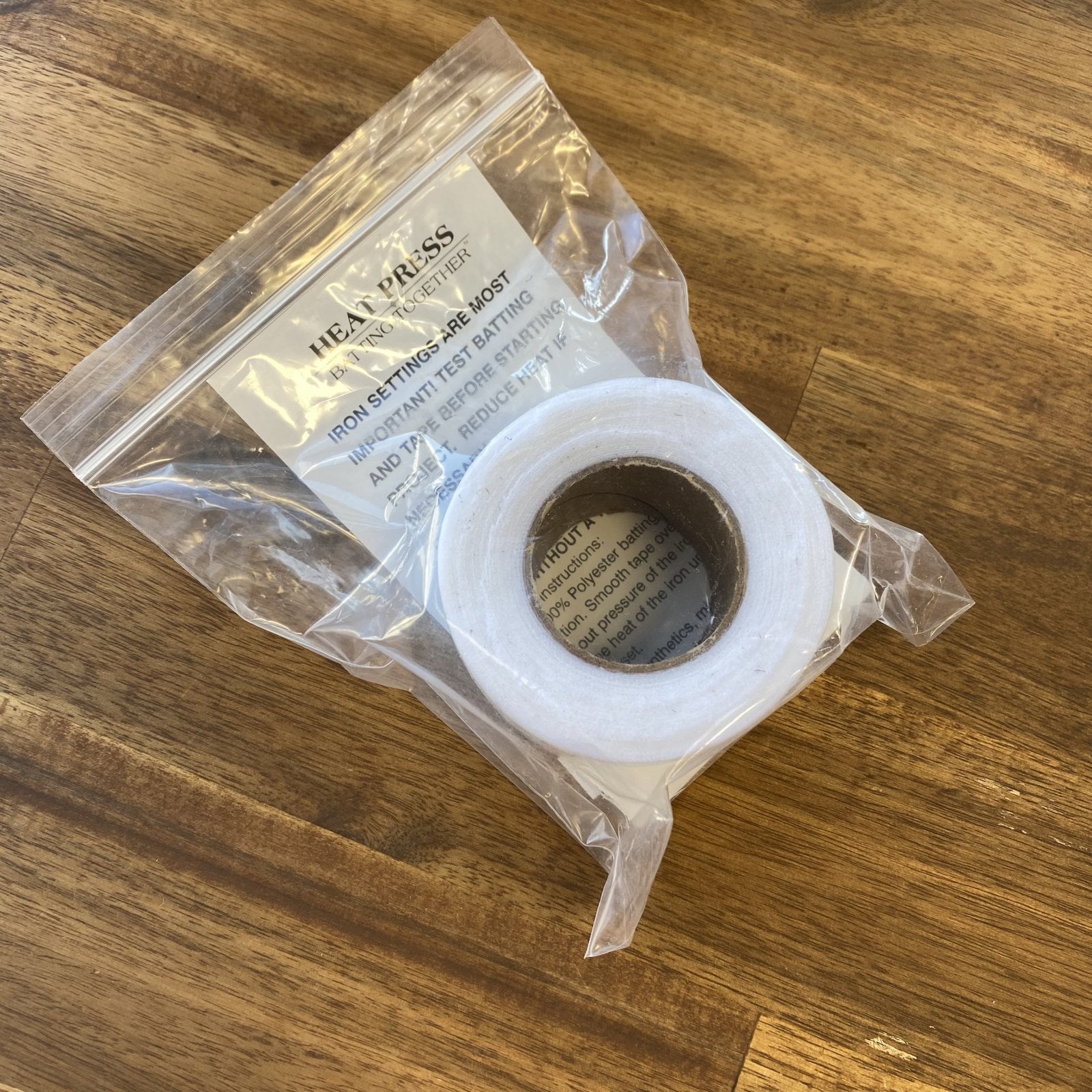 Heat Press Batting Together is a 1-1/2in x 15yd roll of cloth tape that will fuse two edges of batting together. It's soft, it's thin, it stretches, it's needle easy for hand or machine quilting. This can be used on any batting fabric content.