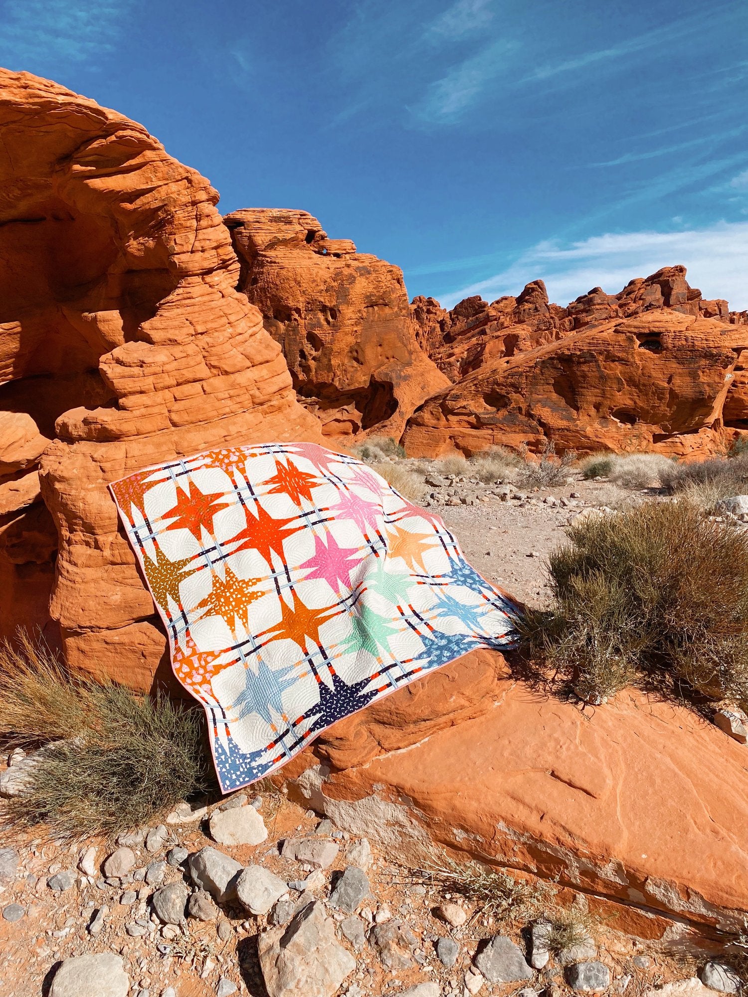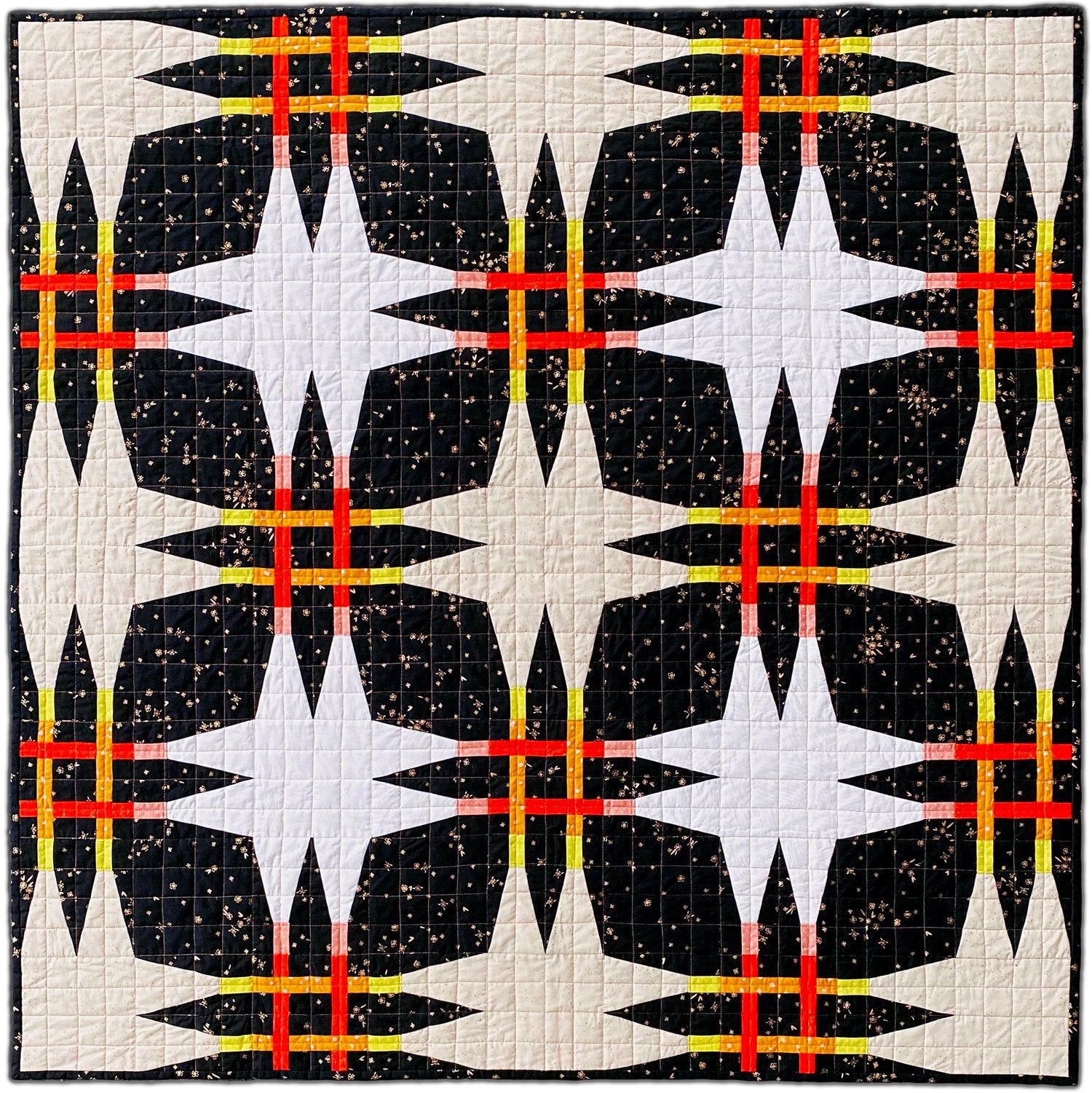 Dioptra’s stars include some unique angles, achieved through either foundation paper piecing or standard piecing with a bit of trimming (it’s up to you). Full instructions included for foundation paper piecing in case you’ve never tried it and would like to give it a try.