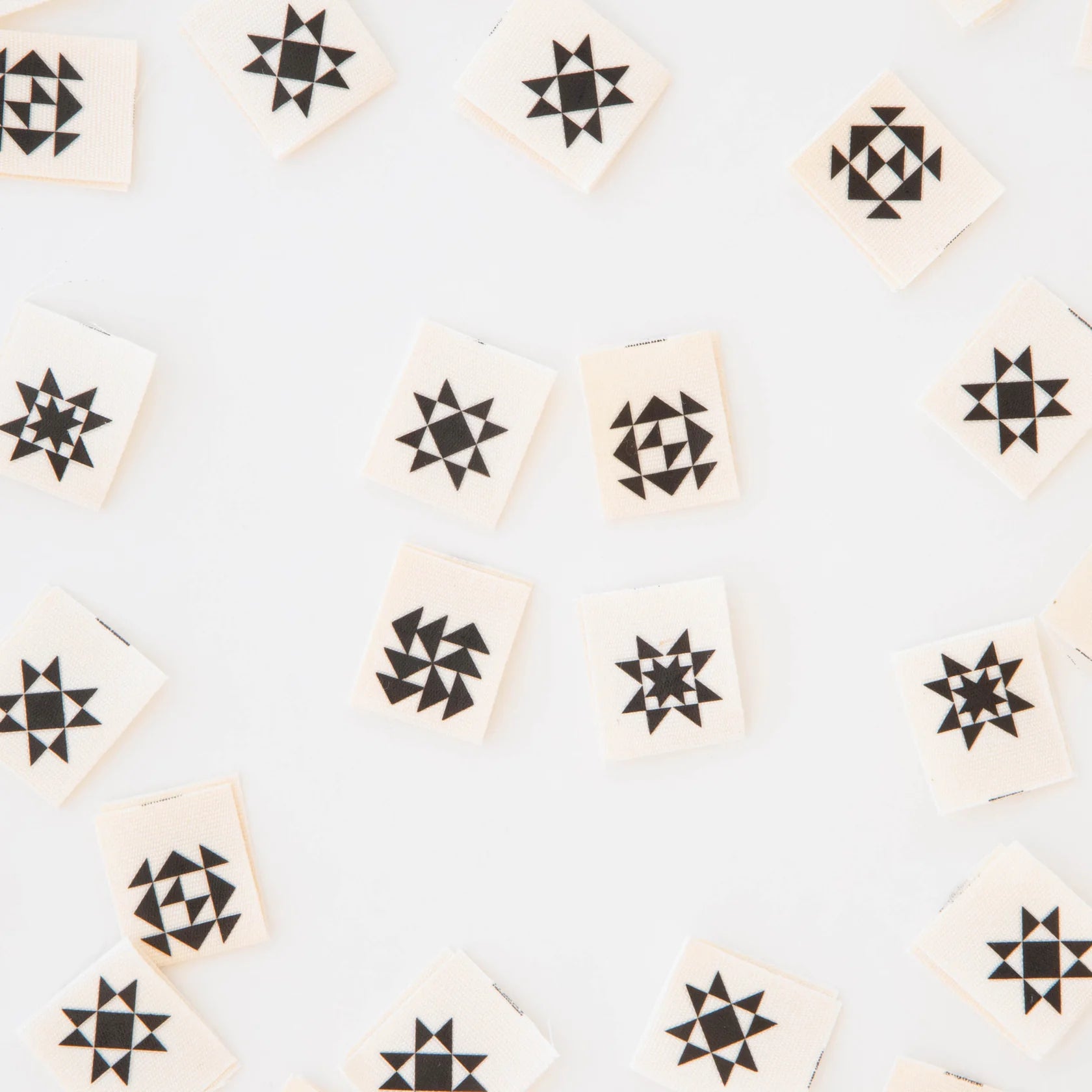 Modern quilt blocks for all your favourite quilted projects! These double-sided labels feature classic quilt blocks that are screen printed on soft organic cotton . They are super soft to the touch, never scratchy, and fully machine washable.
