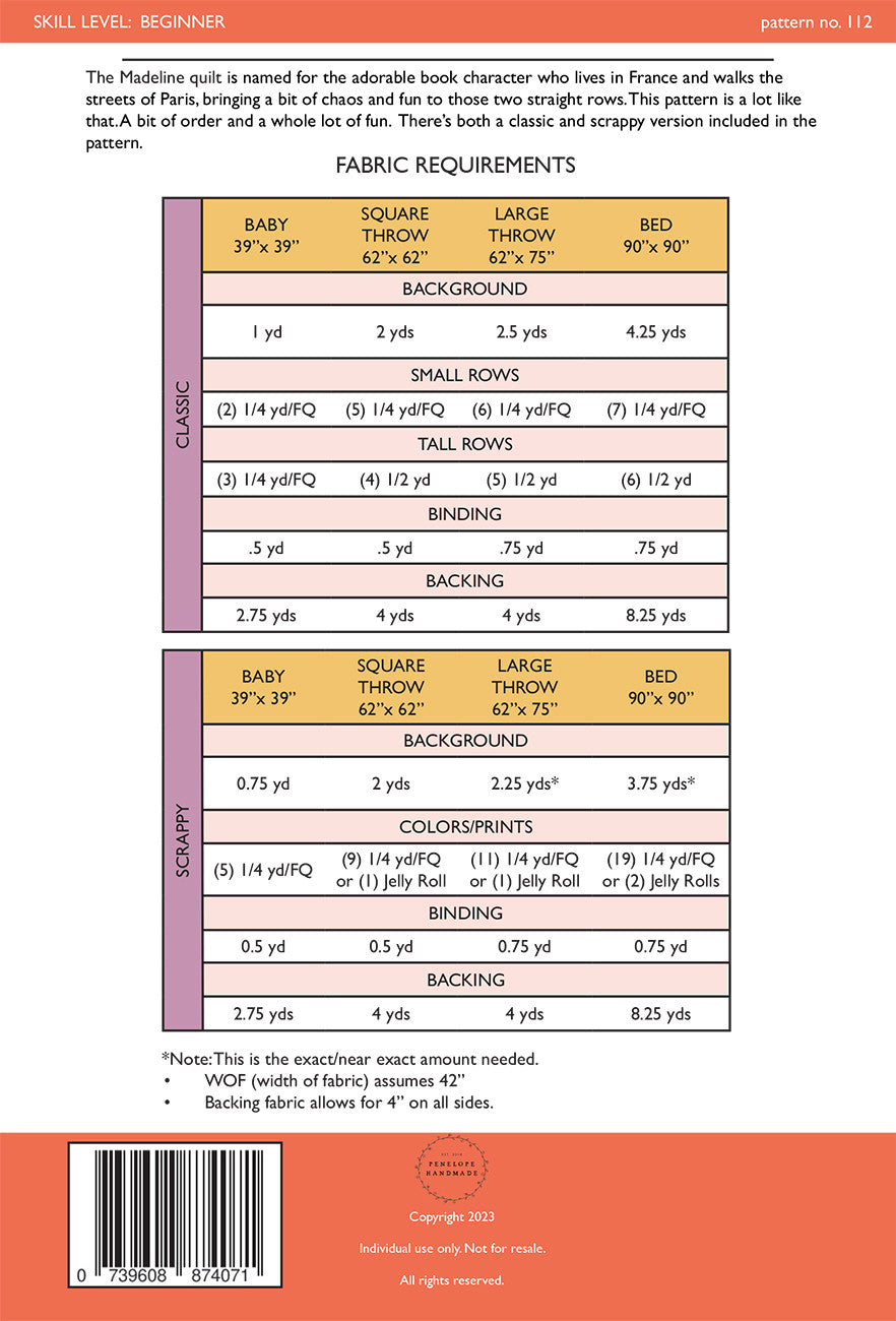 Madeline is part of the patchwork series in an effort to create some fun, fast, patchwork patterns that are also precut friendly!