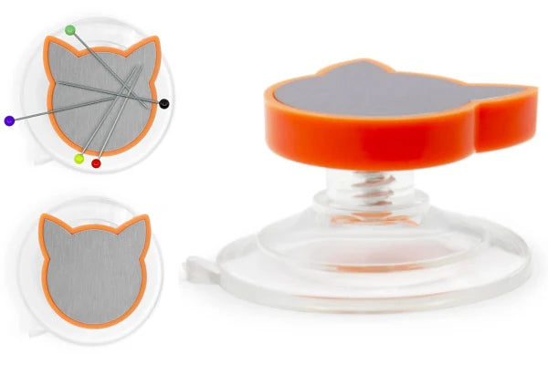 This Dritz magnetic pin holder features a cat shaped surface with a suction cup base for use on the front of your sewing machine or any smooth work surface. Your pins and needles are always within close reach as you work. The cat shape is sure to bring a smile to the cat loving sewist, quilter and crafter.