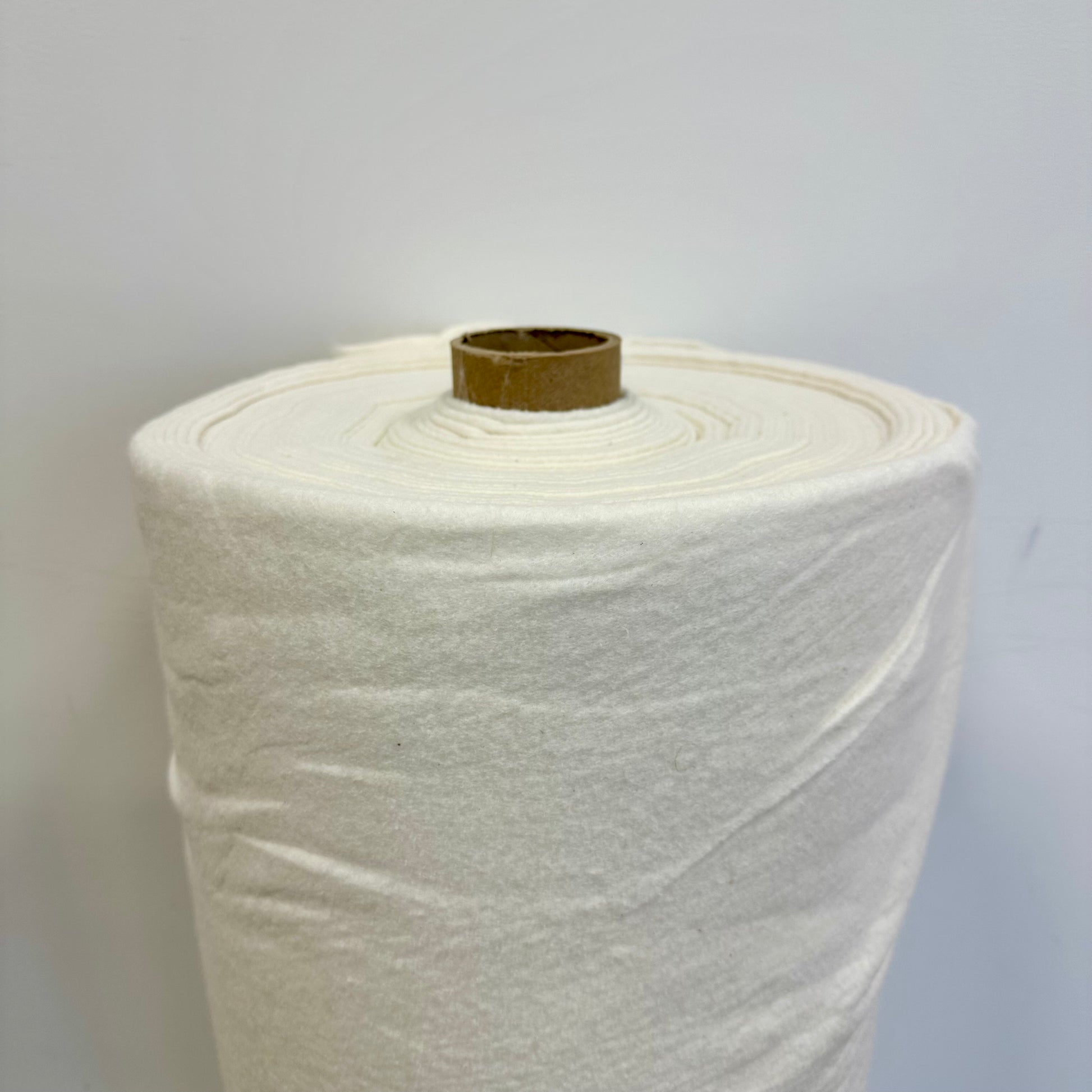 The long staple cotton fiber reduces shrinkage and adds stability so that the stitches can be up to 8” apart. The poly micro fibers add loft and resistance to creases/wrinkles. Our proprietary blended fibers are specially carded, cross-lapped, and needle-punched for strength, consistency, and a beautiful soft drape.