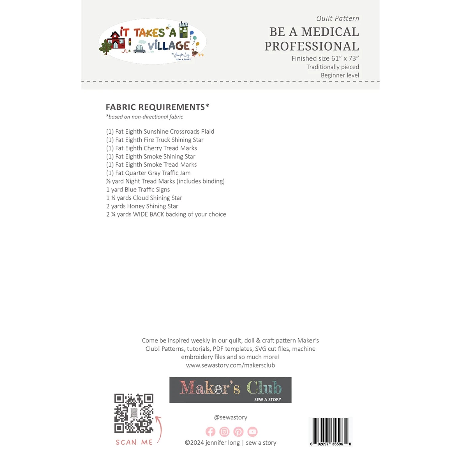 Recognize the medical professionals in your community with a throw quilt showcasing a doctor, an ambulance driving down the street, and a medical bag surrounded by hearts.