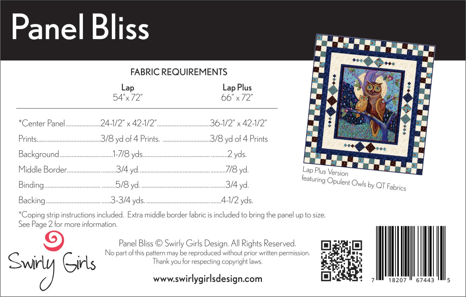 Great panel quilt! Two sizes for 24-1/2" x 42-1/2" or 36-1/2" x 42-1/2" panels. Includes coping strip instructions to bring the panel up to size if needed.