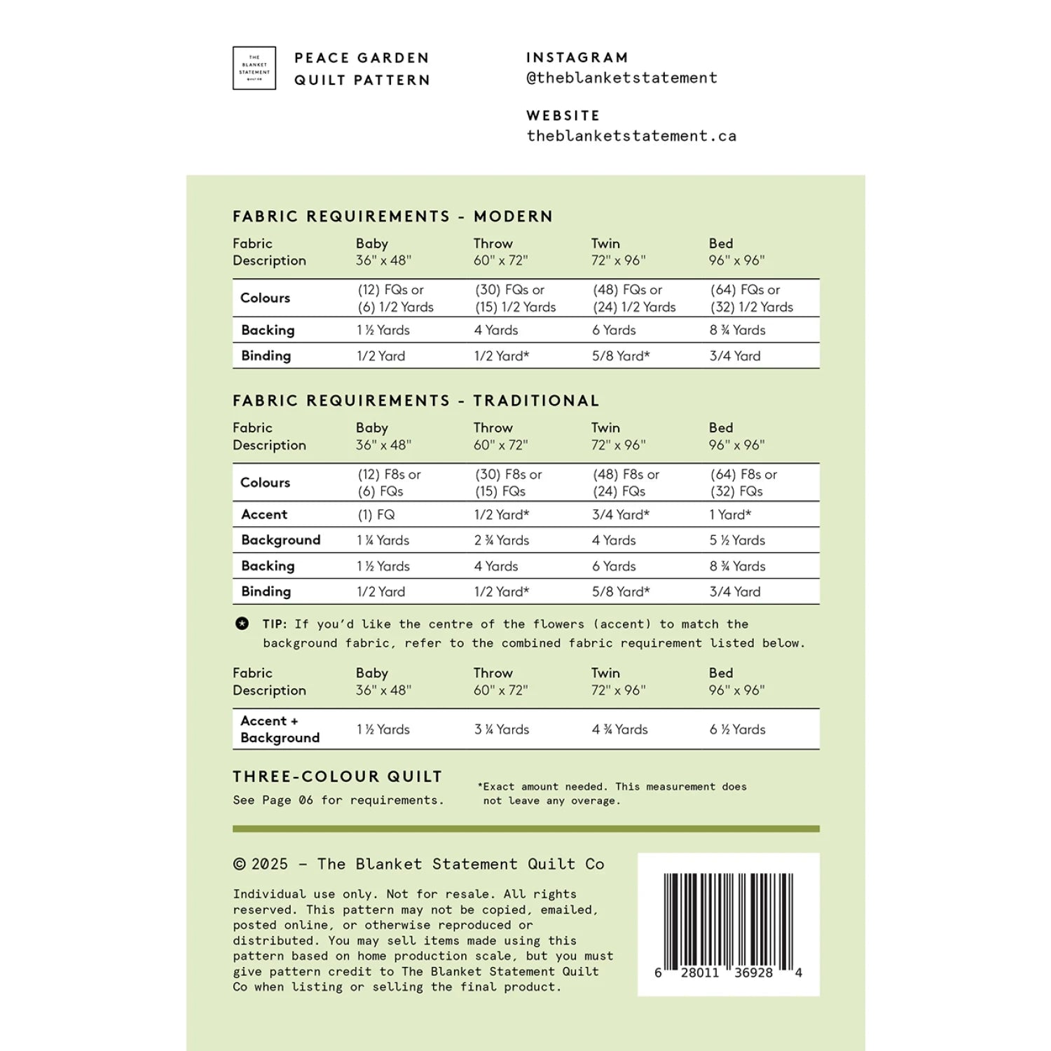 A fresh, modern design rooted in tradition, taking a classic quilt block and letting it bloom in new and exciting ways. This playful, dynamic, block-based pattern offers three unique layout options: Modern, Traditional and 3-Colour, so you can make it truly your own! It's also FQ and F8 friendly, perfect for mixing and matching your favourite prints and solids. The pattern includes instructions for the following sizes: Baby - 36” x 48” Throw - 60” x 72” Twin - 72” x 96” Bed - 96” x 96”